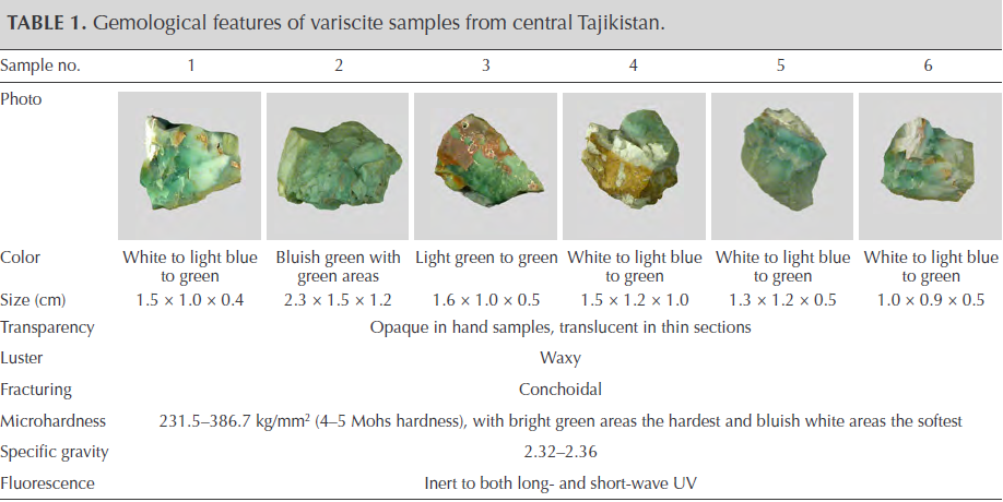 译文节选自2016年春季G&G——VARISCITE FROM CENTRAL TAJIKISTAN: PRELIMINARY RESULTS